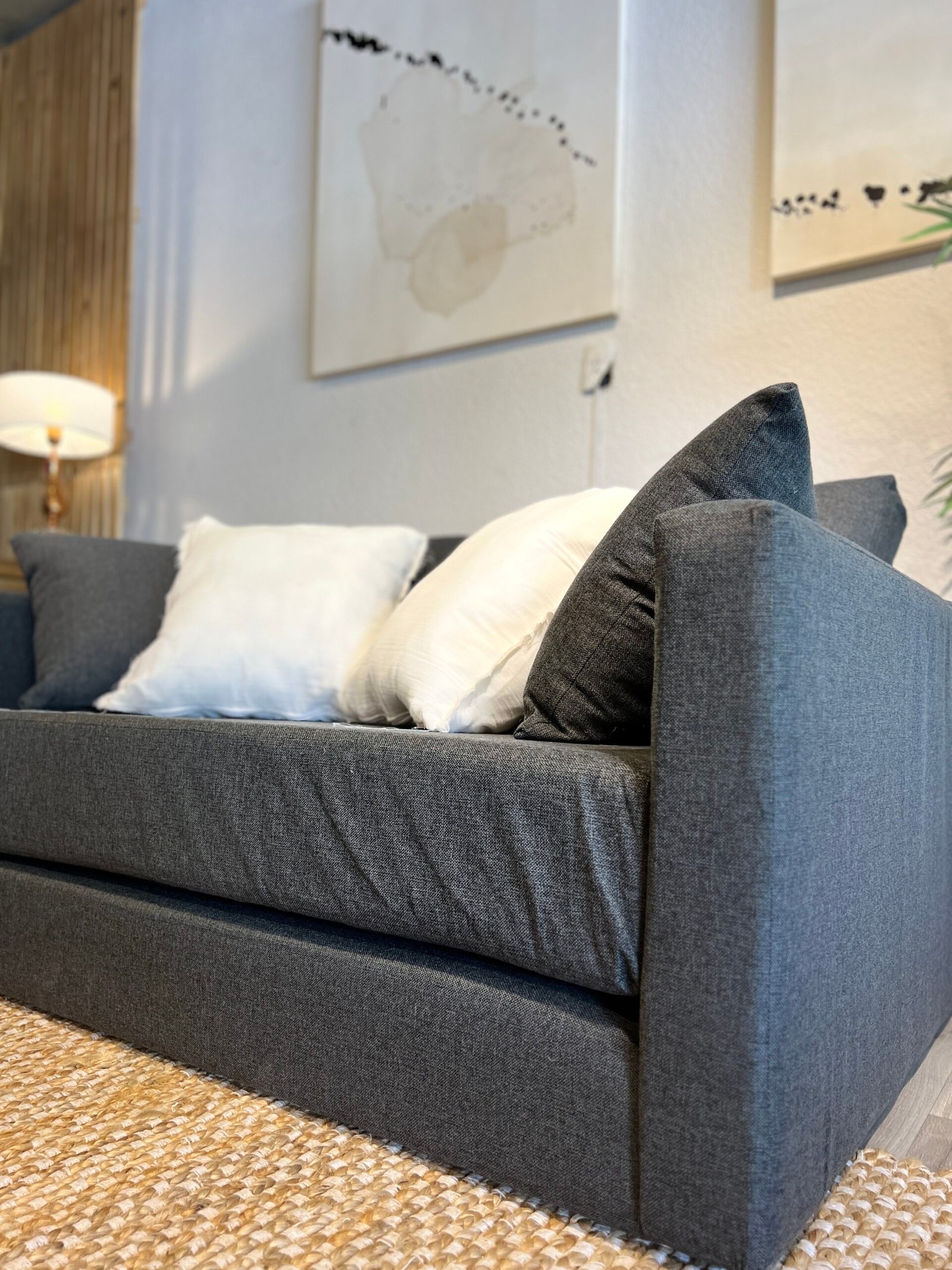 Este sofa cama tiene un largo de 160 cm y una profundidad de 100 cm, ideal para cualquier sala de estar. Sus asientos de espuma soft de 26 kg de densidad